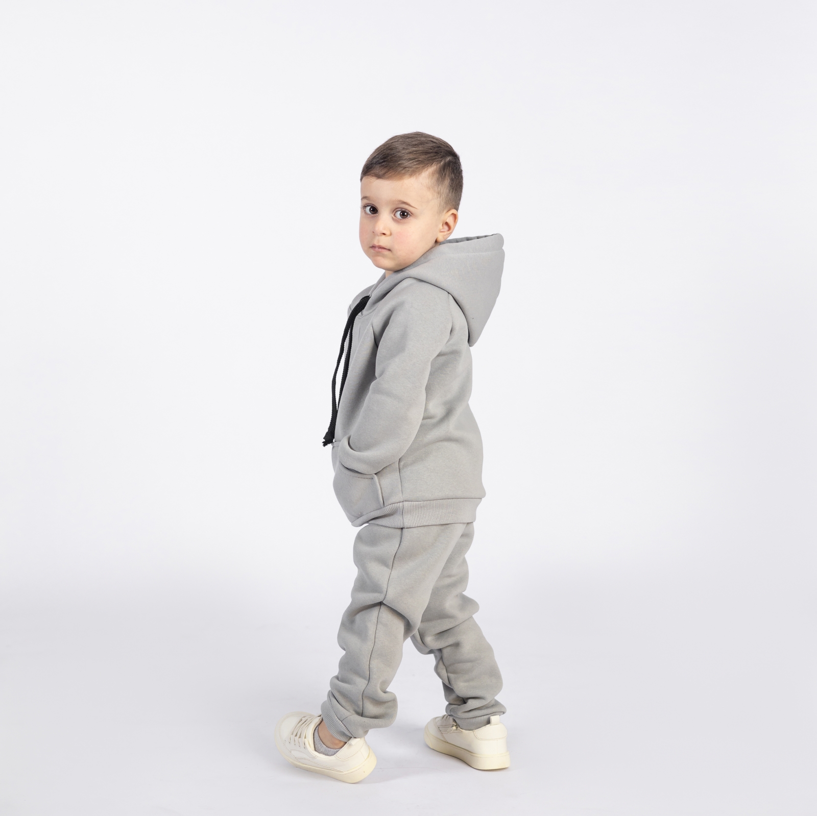 Купить оптом 296-С. Свитшот с капюшоном + Штаны, хлопок 65%, 35% ПЭ, 3-х нитка (начес) серый 146,152,158 в Орле